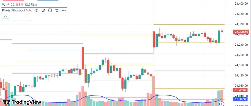 Overbought, Correction Expected Range: 24250 and 24250 Upper range: 24700 Lower range: 24100